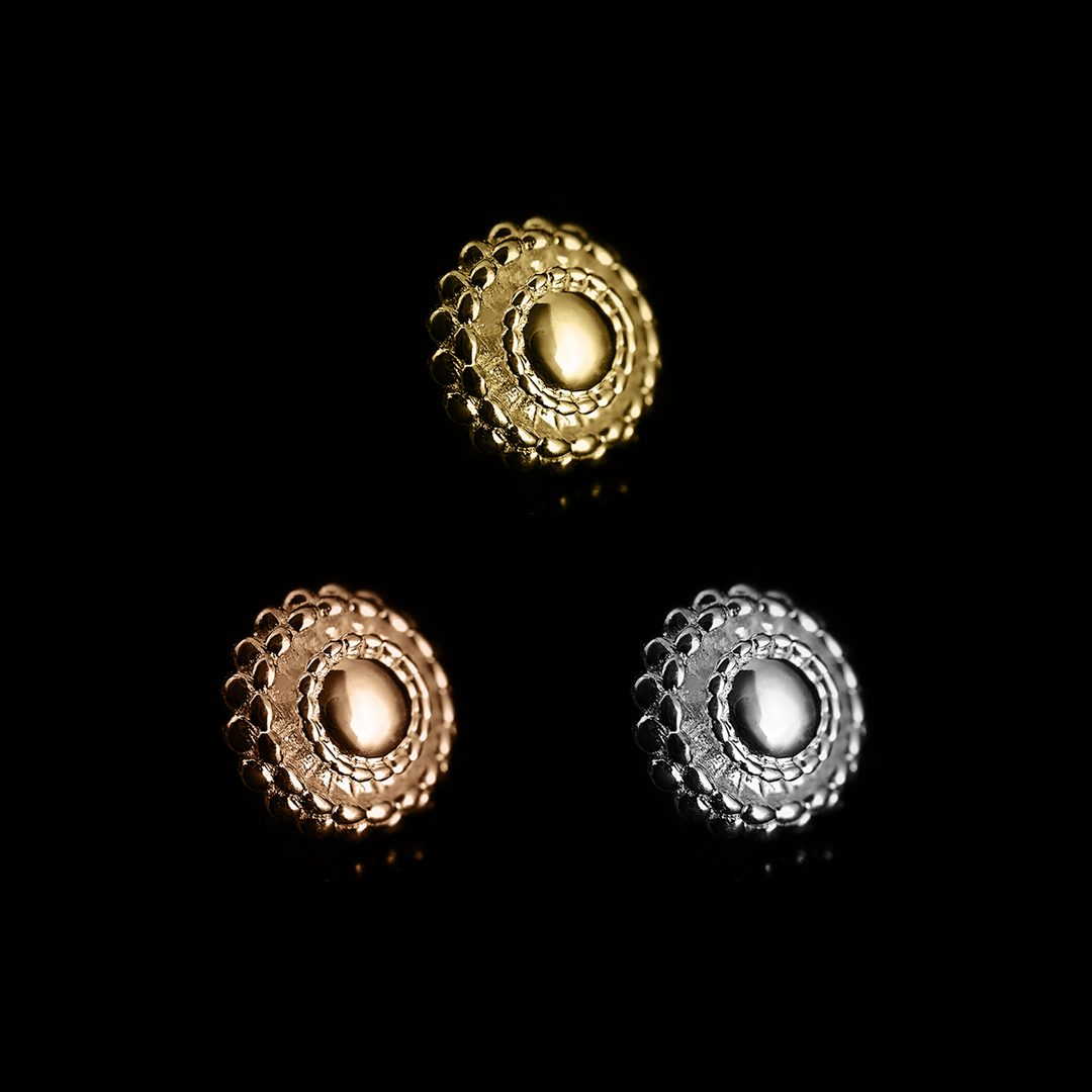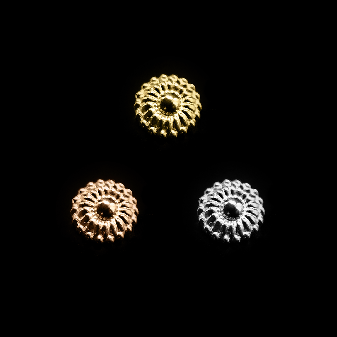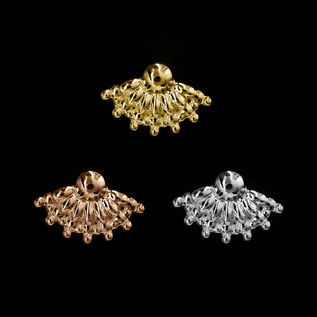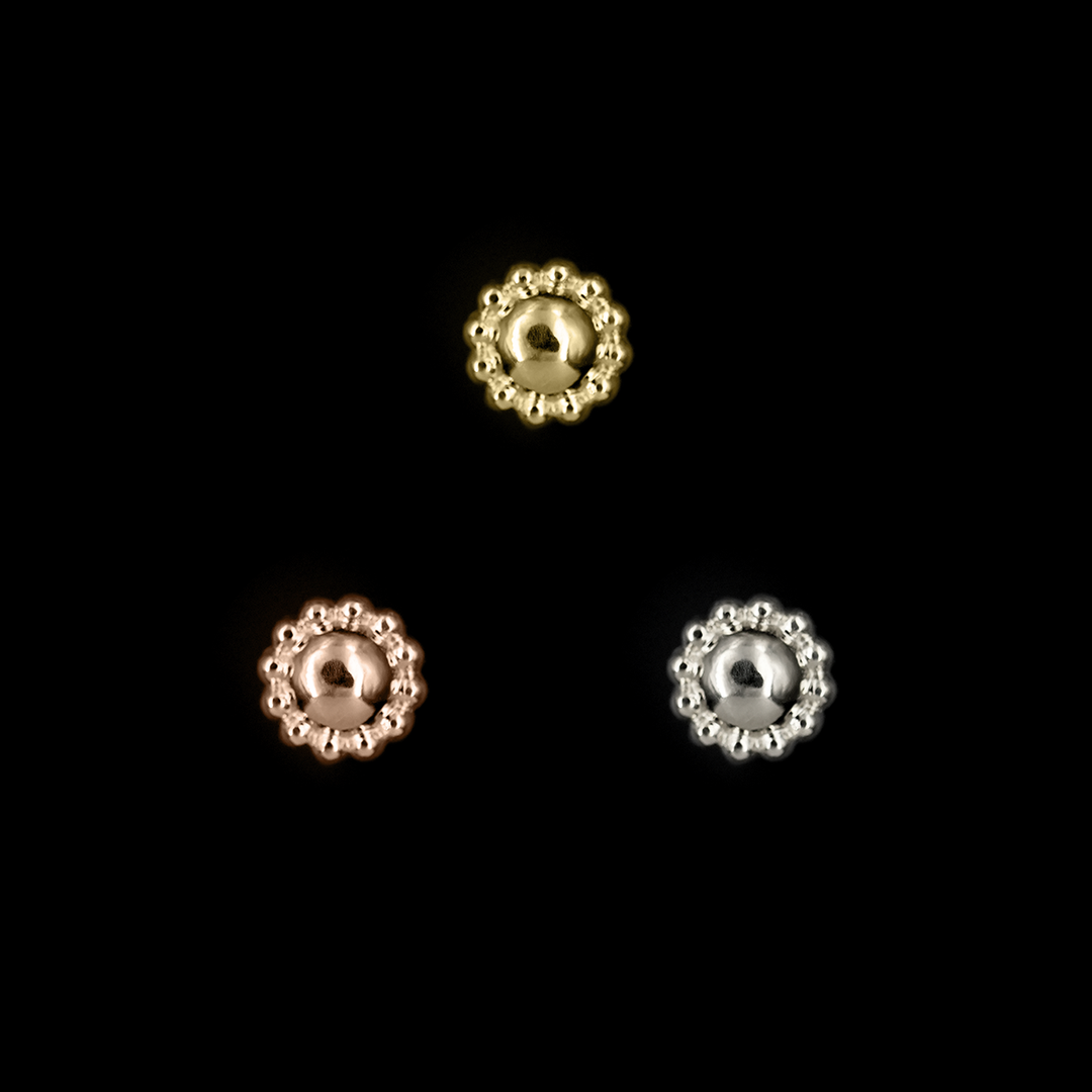 Disclaimer; Our threadless ends require the use of a threadless labret. We offer threadless labrets in solid 14kt gold in 16g and 18g If unsure, please consult your local piercer for your appropriate size.