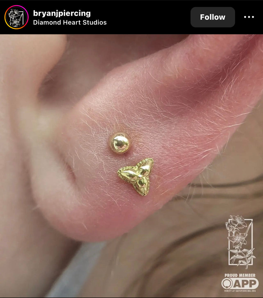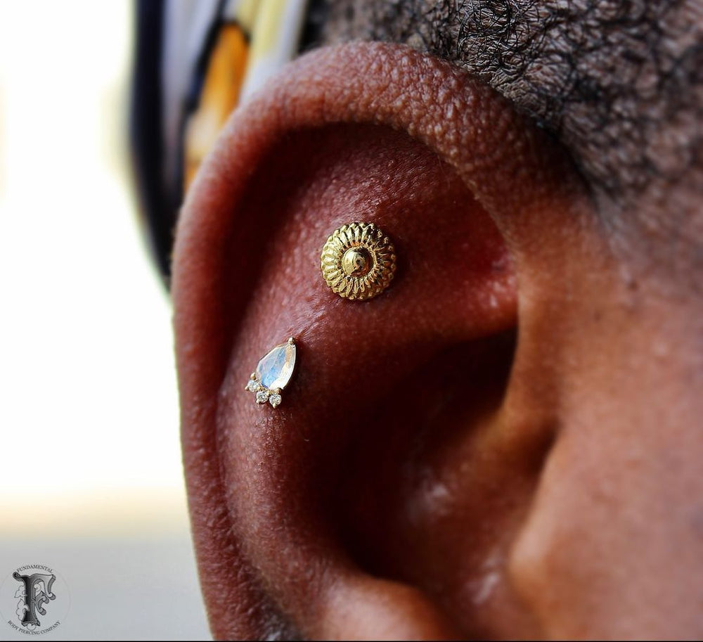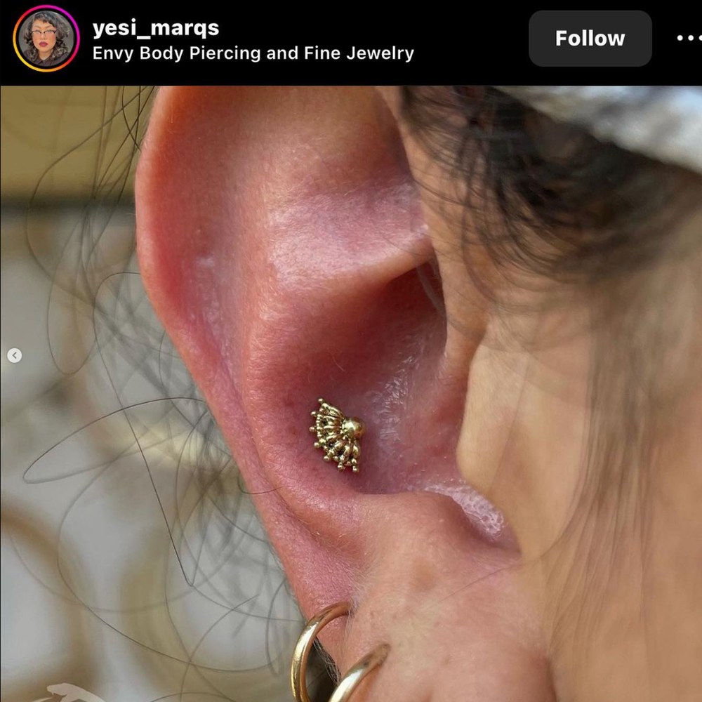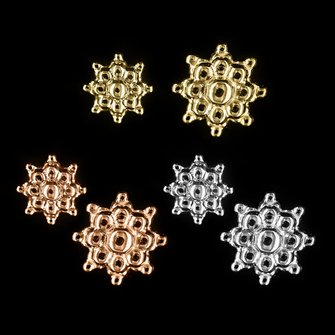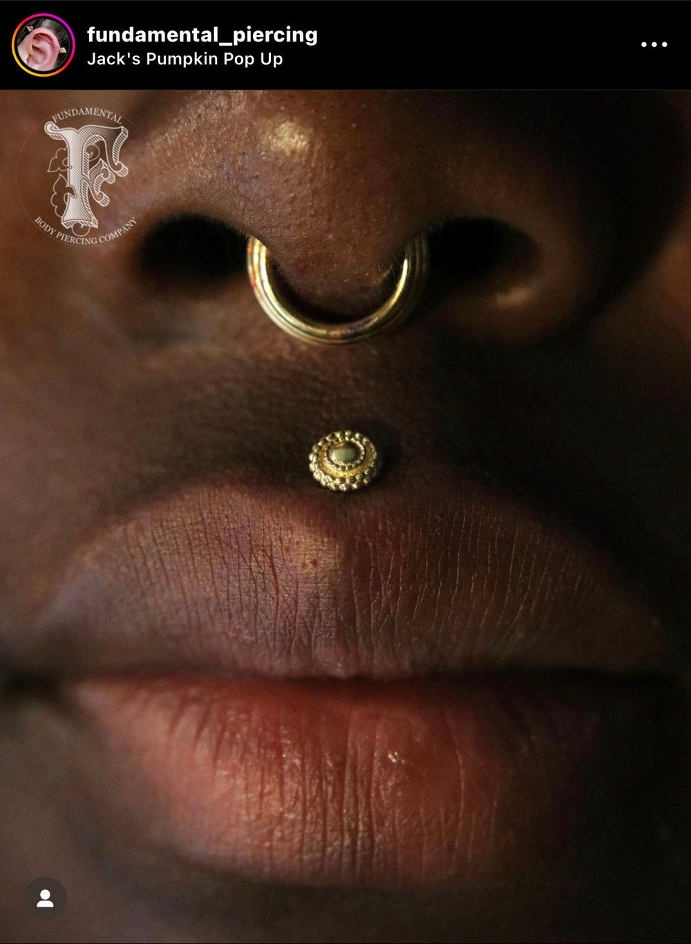 Disclaimer; Our threadless ends require the use of a threadless labret. We offer threadless labrets in solid 14kt gold in 16g and 18g If unsure, please consult your local piercer for your appropriate size.